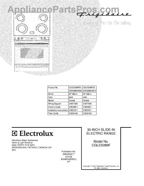 Parts for Frigidaire CGLES389FB2: 01 - Cover Parts