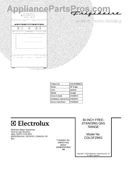 Parts for Frigidaire CGLGFZ86GCA: 01 - Cover Parts