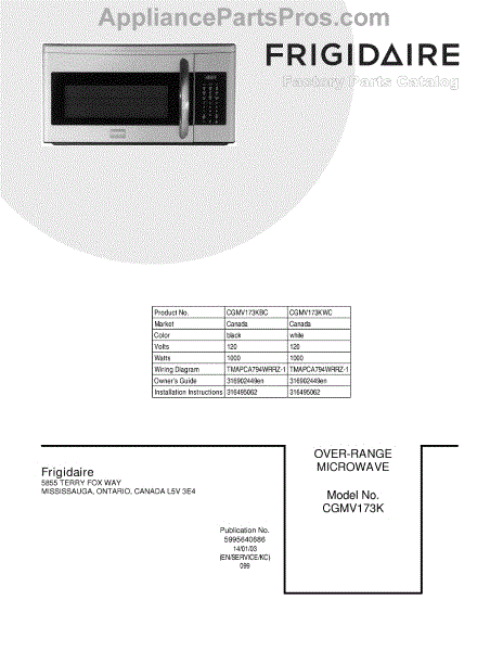 Parts for Frigidaire CGMV173KWC: 01 - Cover Parts