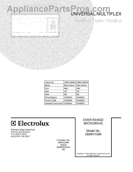 Parts for Frigidaire CMWV150KWA: 01 - Cover Parts