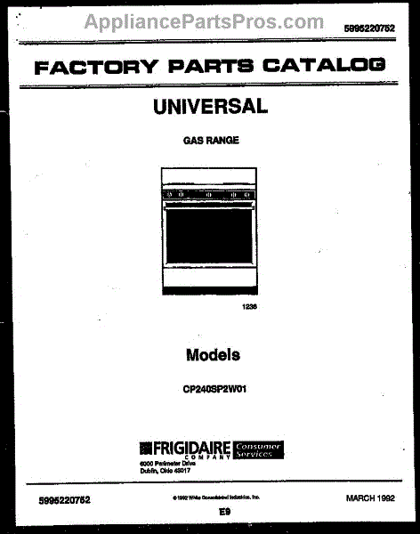 Parts for Frigidaire CP240SP2W1: 01 - Cover Parts