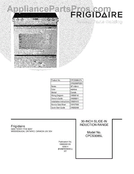 Parts for Frigidaire CPCS3085LFA: 01 - Cover Parts