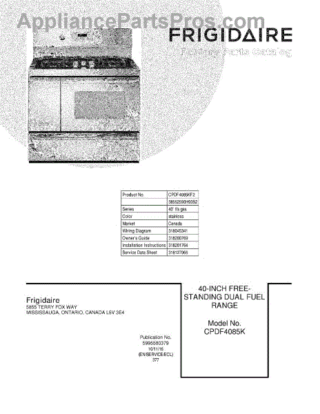 Parts for Frigidaire CPDF4085KF2: 01 - Cover Parts