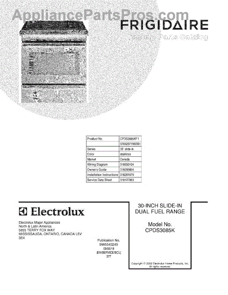 Parts for Frigidaire CPDS3085KF1: 01 - Cover Parts