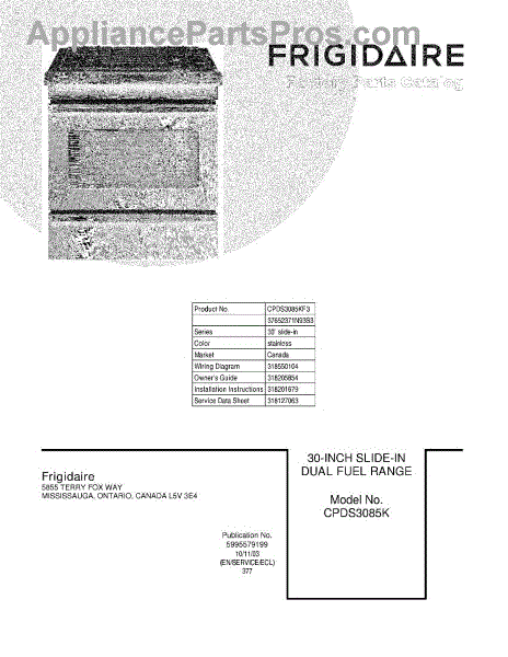Parts for Frigidaire CPDS3085KF3: 01 - Cover Parts