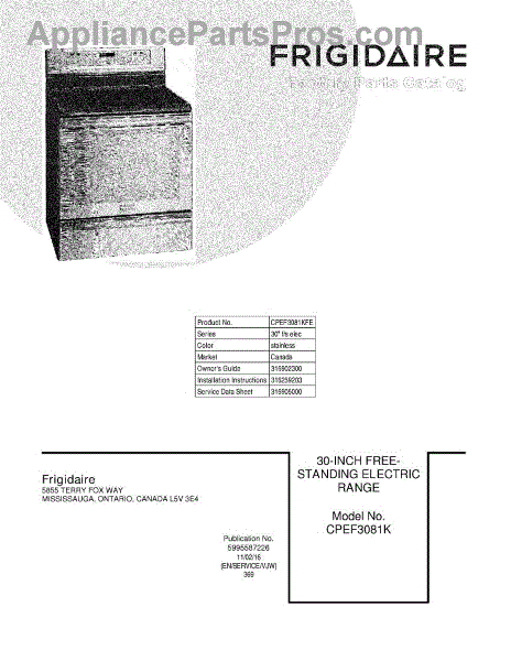 Parts for Frigidaire CPEF3081KFE: 01 - Cover Parts