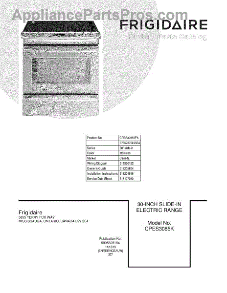 Parts for Frigidaire CPES3085KF5: 01 - Cover Parts