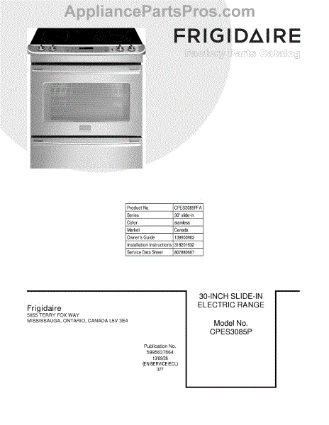 Frigidaire Range Parts