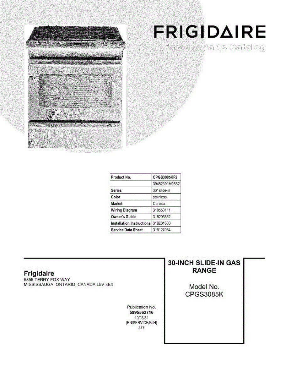 Parts for Frigidaire CPGS3085KF2: 01 - Cover Parts