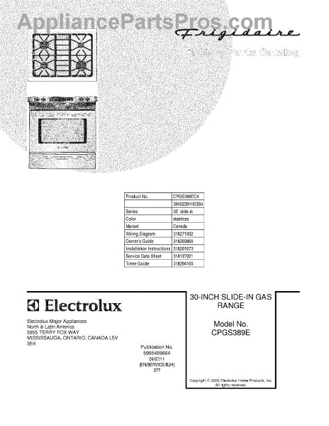 Parts for Frigidaire CPGS389EC4: 01 - Cover Parts