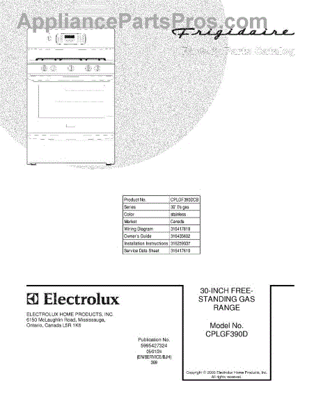Parts for Frigidaire CPLGF390DCB: 01 - Cover Parts