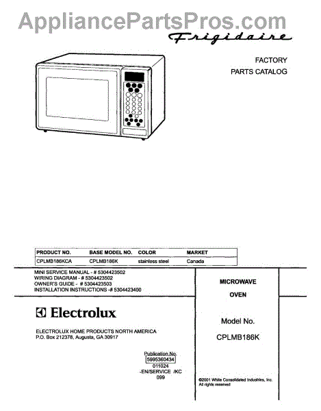 Parts for Frigidaire CPLMB186KCA: 01 - Cover Parts