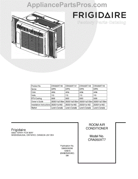 Parts for Frigidaire CRA050XT749: 01 - Cover Parts