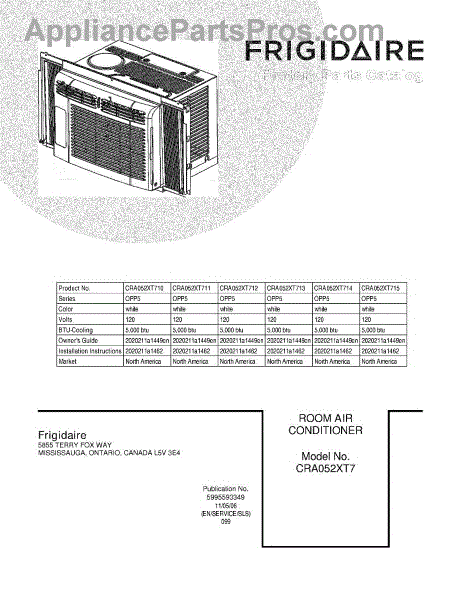 Parts for Frigidaire CRA052XT714: 01 - Cover Parts
