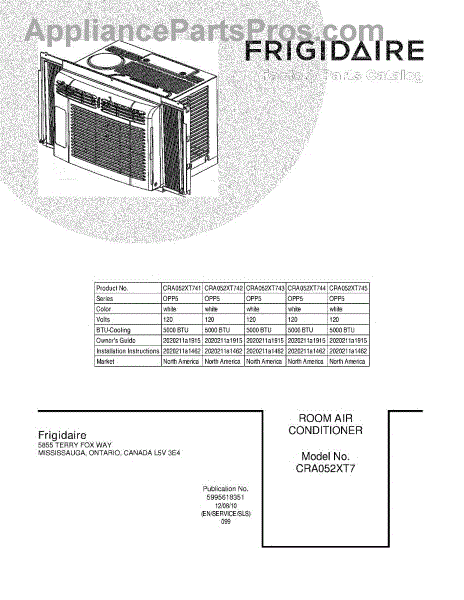 Parts for Frigidaire CRA052XT742: 01 - Cover Parts