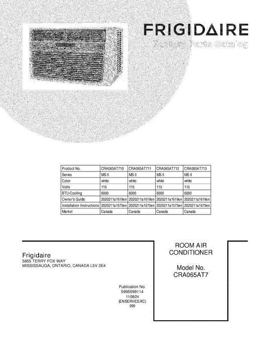 Parts for Frigidaire CRA065AT713: 01 - Cover Parts