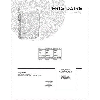 Parts for Frigidaire CRA073PU10: 01 - Cover Parts