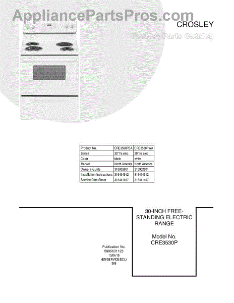Parts for Frigidaire CRE3530PBA: 01 - Cover Parts