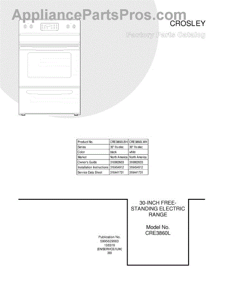 Parts for Frigidaire CRE3860LWH: 01 - Cover Parts