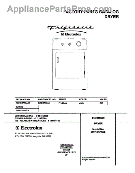 Parts for Frigidaire CRER5700AS1: 01 - Cover Parts