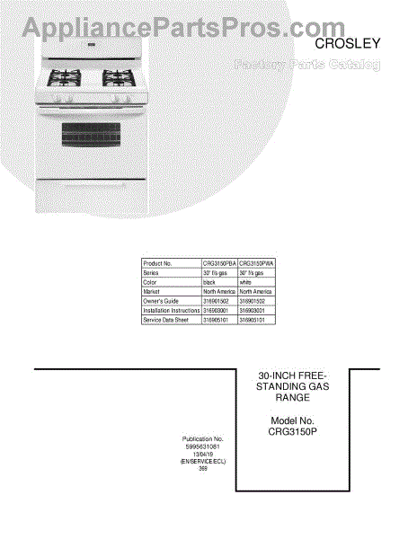 Parts for Frigidaire CRG3150PBA: 01 - Cover Parts