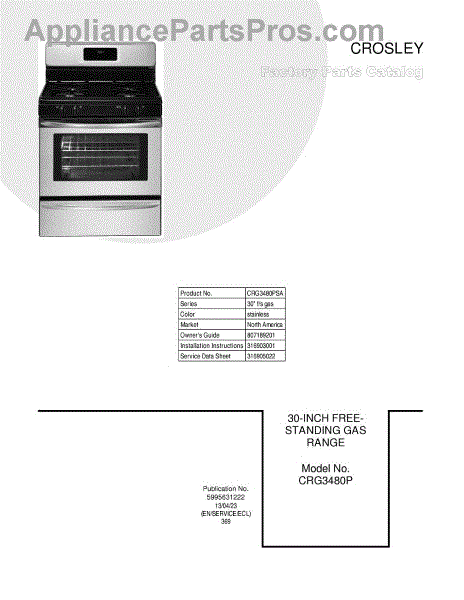 Parts for Frigidaire CRG3480PSA: 01 - Cover Parts