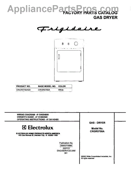 Frigidaire Dryer Parts