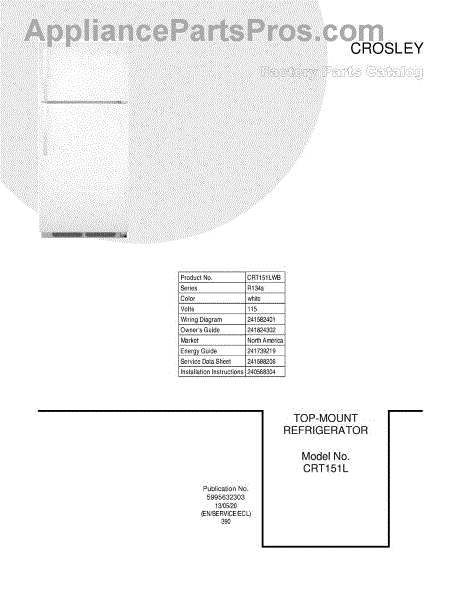Parts for Frigidaire CRT151LWB: 01 - Cover Parts