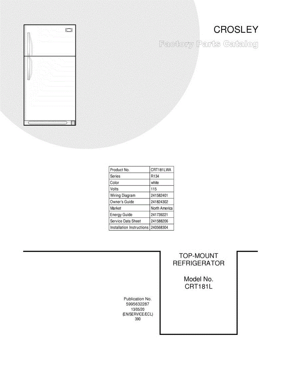 Parts for Frigidaire CRT181LWA: 01 - Cover Parts