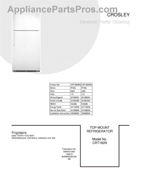 Parts for Frigidaire CRT182NW6: 01 - Cover Parts