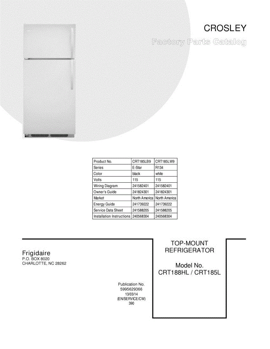 Parts for Frigidaire CRT185LW9: 01 - Cover Parts