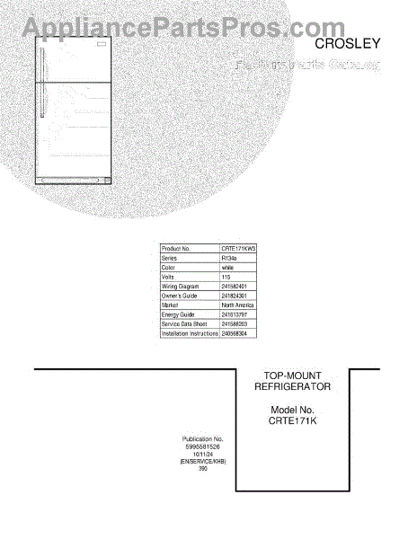 Parts for Frigidaire CRTE171KW3: 01 - Cover Parts