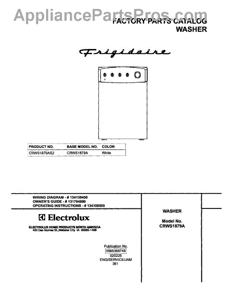 Parts for Frigidaire CRWS1879AS2: 01 - Cover Parts