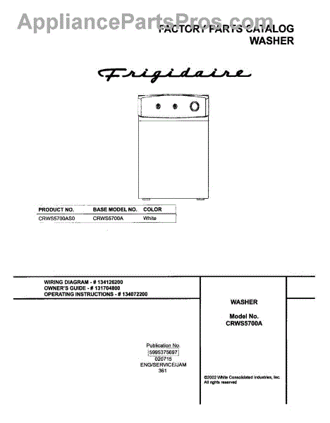 Parts for Frigidaire CRWS5700AS0: 01 - Cover Parts