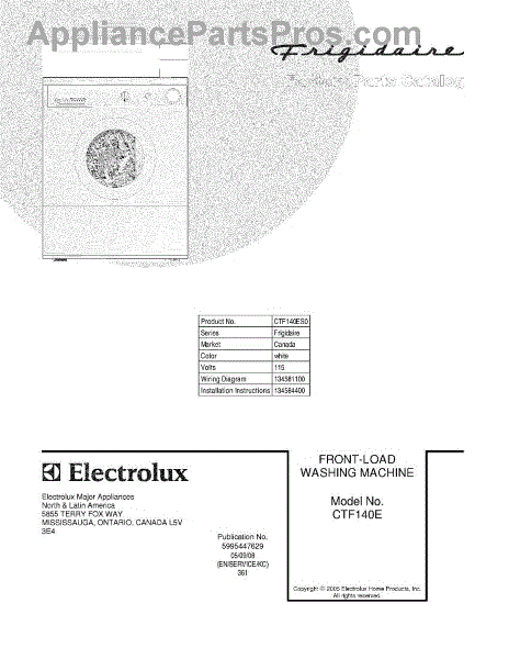 Parts for Frigidaire CTF140ES0: 01 - Cover Parts