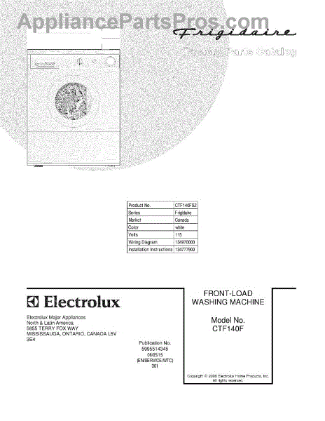 Parts for Frigidaire CTF140FS2: 01 - Cover Parts