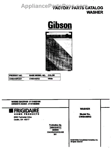Parts for Frigidaire CWS445RGS1: 01 - Cover Parts