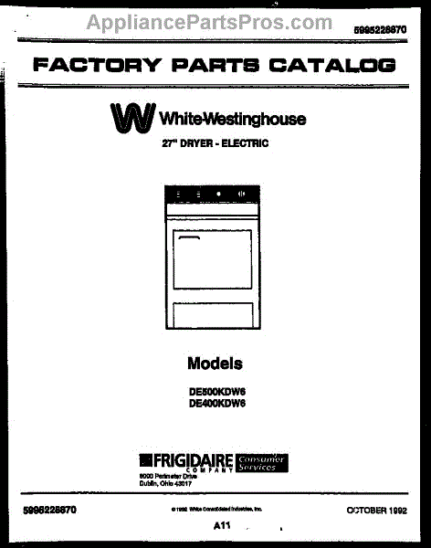 Parts for Frigidaire DE400KDH6: 01 - Cover Parts