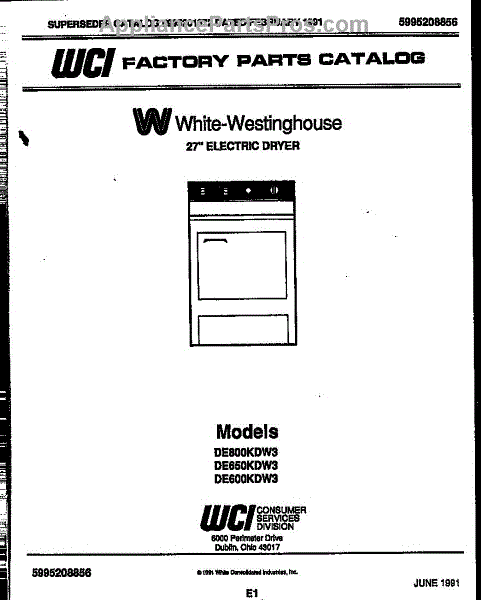 Parts for Frigidaire DE650KDH3: 01 - Cover Parts