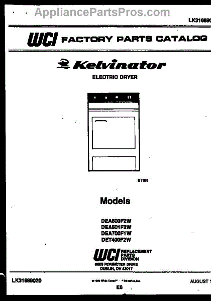 Parts for Frigidaire DEA700F1J: 01 - Cover Parts