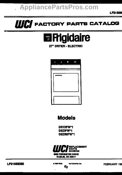 Parts for Frigidaire DECIFH1: 01 - Cover Parts