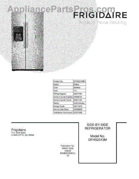 Parts for Frigidaire DFHS2313MF5: 01 - Cover Parts