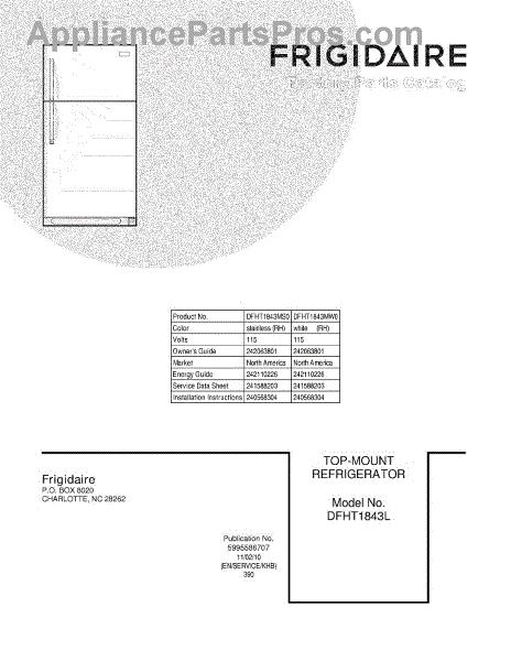Parts for Frigidaire DFHT1843MW0: 01 - Cover Parts