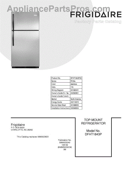 Parts for Frigidaire DFHT1843PS0: 01 - Cover Parts