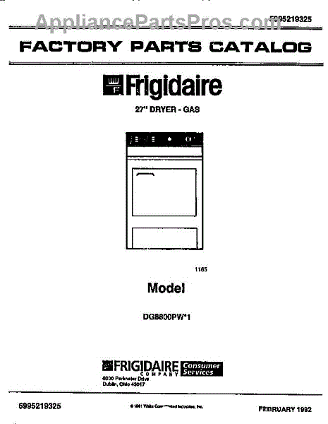 Parts for Frigidaire DG8800PW1: 01 - Cover Parts