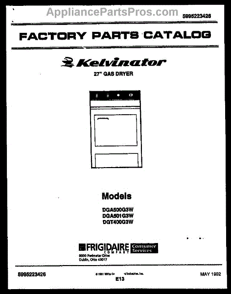 Parts for Frigidaire DGA501G3J: 01 - Cover Parts