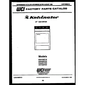 Parts for Frigidaire DGA700F1J: 01 - Cover Parts