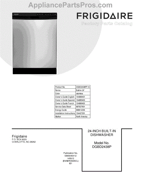 Parts for Frigidaire DGBD2438PF1A: 01 - Cover Parts