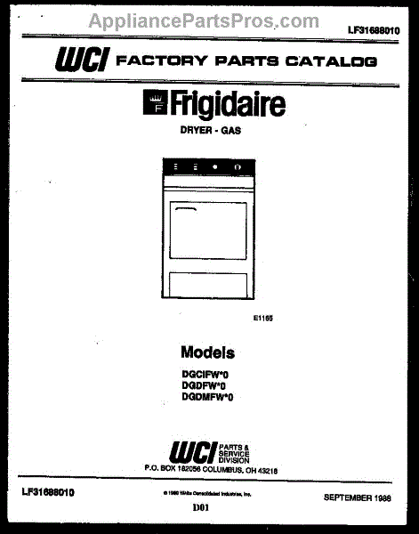 Parts for Frigidaire DGCIFH0: 01 - Cover Parts