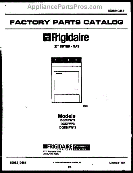 Parts for Frigidaire DGDFH3: 01 - Cover Parts